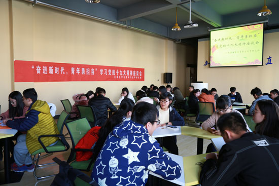 开展专题学习。基层团支部通过主题团日、学习交流、征文演讲、知识竞赛等专题学习形式学习党的十九大报告和《党章》,学习新华社通讯《习近平:新时代的领路人》、人民日报关于学习贯彻党的十九大精神系列评论员文章,观看了《将改革进行到底》《法治中国》《大国外交》《辉煌中国》《强军》《不忘初心、继续前进》等专题片。通过学习教育活动,进一步增强青年学生勇于担当、奋发有为的意识,团员青年表示要主动融入服务国家发展战略,为加快建设幸福美好新甘肃贡献青春力量。