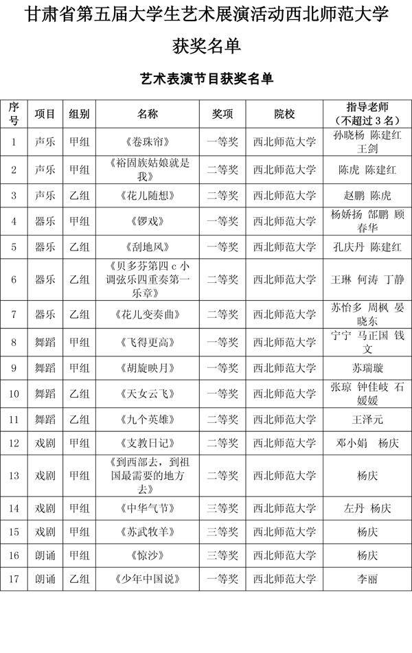 西北师大在甘肃省第五届大学生艺术展演中获66项奖励