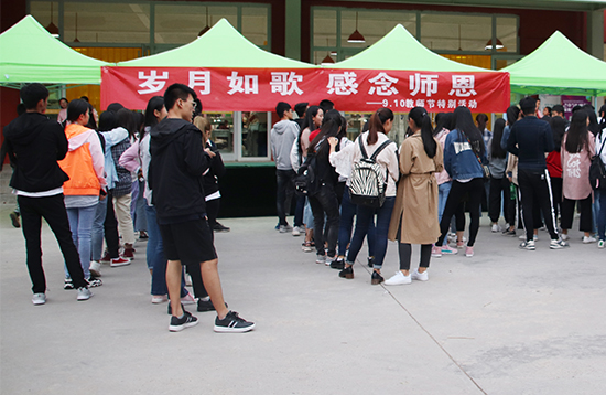 各学院学生会在东苑餐厅、各教学楼等场所,开展了“教师节”快闪活动,同学们用一首首歌曲,一束束鲜花,送上教师节的美好祝愿,表达对老师们谆谆教诲的感激之情。