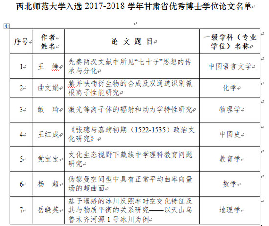 西北师大23篇论文入选甘肃省优秀博士硕士学位论文